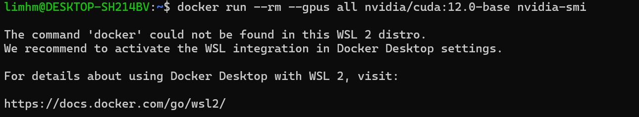 -> "Ubuntu 안에 docker 명령어가 없어요. Docker Desktop이랑 연결돼야 합니다" 라는 뜻.