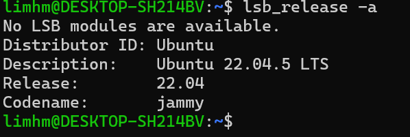 이 창에서 lsb_release -a 명령어를 다시 실행하니, 새로 추가 설치한 Ubuntu 의 버전(22.04)이 정상적으로 확인되었다.